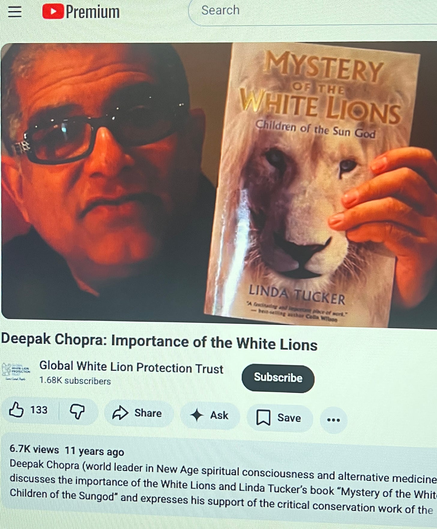 So when Deepak Chopra - pop guru extraordinaire - and his YouTube review of the book “Mystery of the White Lions” by Linda Tucker appeared on my laptop seemingly out of nowhere, I couldn’t be completely surprised even though the review was more than ten years old. I remember staring at the screen, wondering why it was appearing now - and what question it might be answering.
